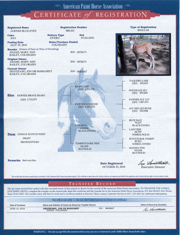 Pawnee Brave Heart's New Colt: Jawnee Blue Eyes