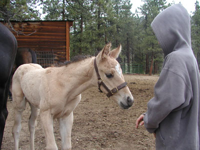 Born June 14, 2004 Sire: Pawnee Braveheart Dam: Skipit Leo McCue This is Lacy our filly out of Skipit Leo McCue, our black quarterhorse mare. She is beautiful!