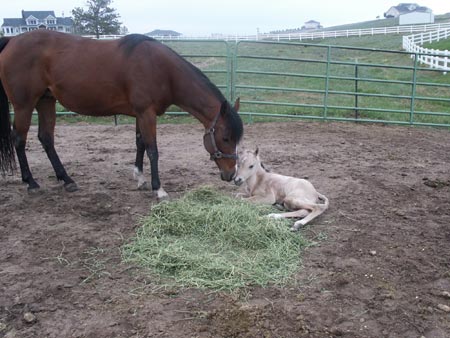 Here are pictures of Brave Heart's fifth foal this season. He is a colt named